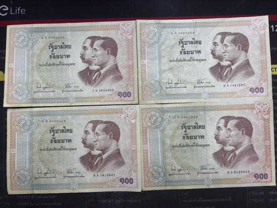 ธนบัตร100บาท ร.5,ร.9 ทั้งหมด4ใบ เคาะเดียวแดง!!!