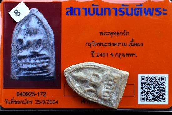 พระพุทธกวัก เนื้อผงน้ำมัน ปี 2491 วัดชนะสงคราม กรุงเทพฯ มาพร้อมบัตรรับรองพระแท้การันตีพระ