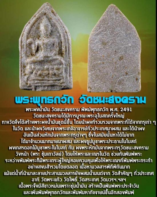 พระพุทธกวัก เนื้อผงน้ำมัน ปี 2491 วัดชนะสงคราม กรุงเทพฯ มาพร้อมบัตรรับรองพระแท้การันตีพระ สภาพพระตามรูปที่ลงทุกประการ
