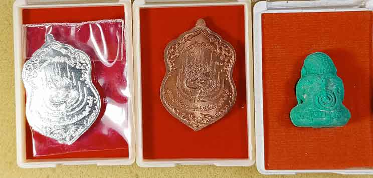 เหรียญ หลวงปู่บุญมา สํานักสงฆ์เขาแก้วทอง ปราจีนบุรี 2 เหรียญ + เหรียญ 2 เหรียญ + พระปิดตา สำนักสงฆ์ป่าสมุนไพรเขาไม้แก้ว จ.ปราจีนบุรี |