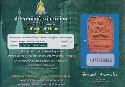 พระเนื้อดิน พิมพ์พระพุทธทรงปลา (รุ่นสู่มาตุภูมิ) วัดบางนมโค จังหวัดพระนครศรีอยุธยา ปี พุทธศักราช 2533 พร้อมใบประกาศงานประกวดสมาคม จ.ร้อยเอ้ด