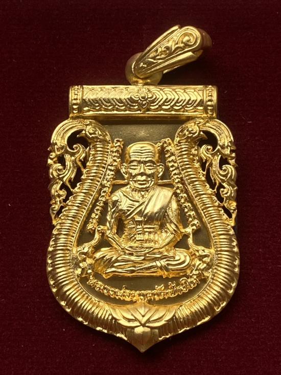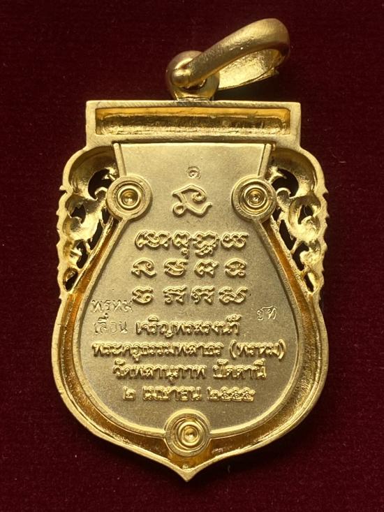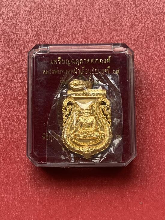 เคาะเดียวแดง หลวงปู่ทวด พิมพ์หน้าเลื่อน รุ่น เจริญพรสรงน้ำ เลข1 เนื้อ บรอนชุบทอง