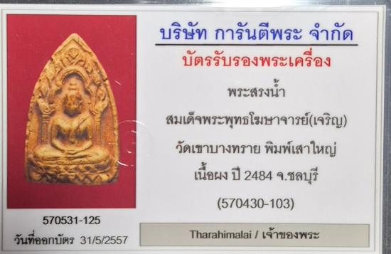 พระสรงน้ำ สมเด็จพระพุทธโฆษาจารย์(เจริญ) วัดเขาบางทราย พิมพ์เสาใหญ่ ปี 2484 จ.ชลบุรี สวยๆ พร้อมบัตรรับรอง