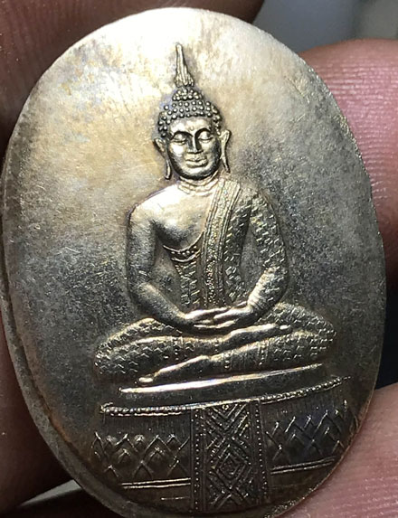 เหรียญแอ่งกระทะพระแก้วมรกต หลวงพ่อพรหม วัดขนอนเหนือ กะไหล่เงินโบราณ