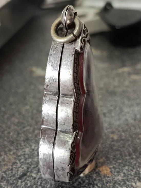 ตลับเงินแท้ใหญ่ ปิดหลัง หัวสิงห์ใหญ่ ใส่พระท่ากระดาน พระกริ่ง หนาหนัก 17.09 กรัม เงินกรัมละ 55-60 แล้วครับ รับประกันสวย