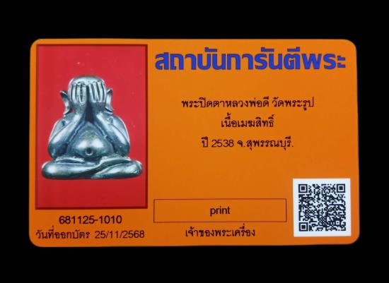 พระปิดตาปุ้มปุ้ย เนื้อเมฆสิทธิ์ หลวงพ่อดี วัดพระรูป จ.สุพรรณบุรี ปี 2538 พร้อมบัตรรับรอง ครับ
