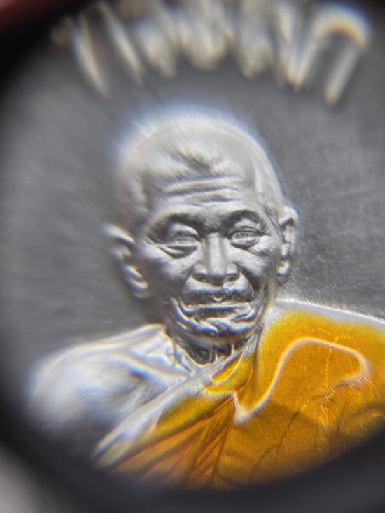 เหรียญ ยืน อายุวัฒนมงคล81ปี หลวงปู่มหาศิลา หลวงปู่ศิลา สิริจันโท ธรรมอุทยาน วัดพระธาตุหมื่นหิน จ.กาฬสินธุ์ เนื้อเงินลงยาจีวร เลข ๙๘๖ มีกล่องเดิม