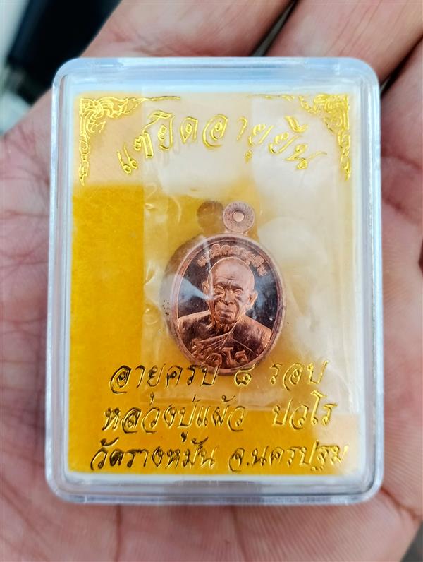เหรียญเม็ดแตง หลวงปู่แผ้ว ปวโร วัดรางหมัน รุ่น แซยิดอายุยืน ครบ ๘ รอบ ๙๖ ปี วัดรางหมัน สวยเดิม พร้อมกล่อง