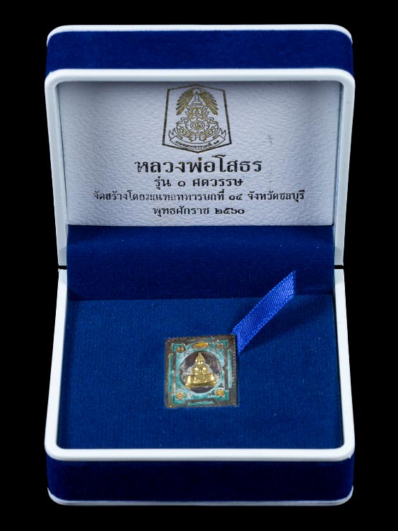เหรียญแสตมป์หลวงพ่อโสธร รุ่น ๑ ศตวรรษ (หมายเลข ๑) เนื้อเงินหน้ากากทองคำลงยา พร้อมกล่องเดิมๆ