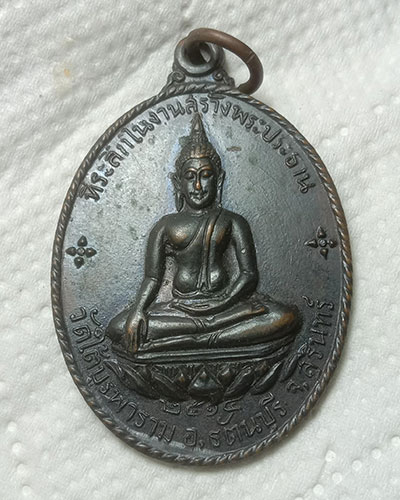 วัดใจ.. หลวงปู่ดุลย์ปลุกเสก สร้างเพื่อเป็นที่ระลึกในงานสร้างพระประธาน วัดใต้บูรพาราม อ.รัตนบุรี จ.สุรินทร์ ปี 2514 เนื้อทองแดงรมดำ |