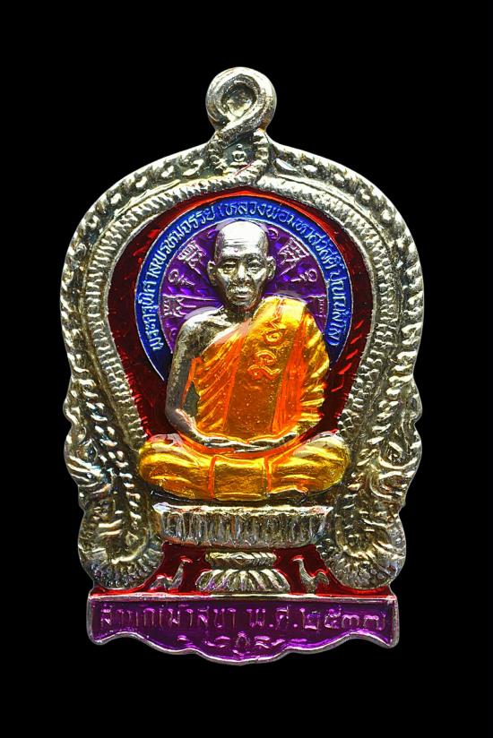 เหรียญพิมพ์นั่งพาน รุ่น 1 หลวงพ่อสวัสดิ์ ปุณณสีโล เนื้อเงินลงยาสีม่วง หมายเลข 69 วัดใจเคาะแรก!!!