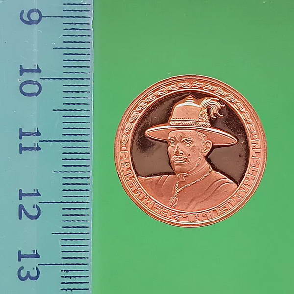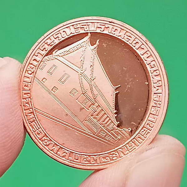 เหรียญสมเด็จพระเจ้าตากสินมหาราช ที่ระลึกบูรณะพระราชวังเดิม พ.ศ.2538 เนื้อทองแดง บริสุทธิ์ 99.9% ขัดเงาพ่นทราย น้ำหนัก 8 กรัม เส้นผ่านศูนย์กลาง 2.5 เซนติเมตร จำนวนการผลิต 100,000 เหรียญ ผลิตโดย PAMP S.A. ประเทศ Switzerland