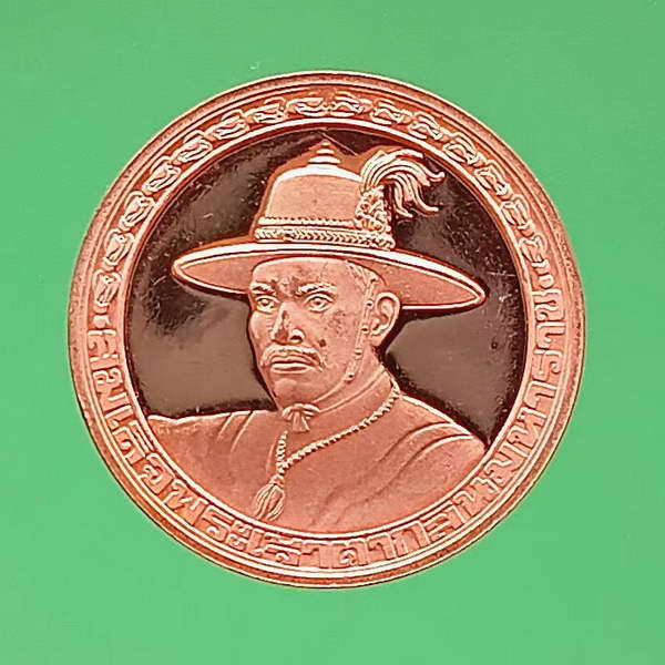 เหรียญสมเด็จพระเจ้าตากสินมหาราช ที่ระลึกบูรณพระราชวังเดิม เนื้อทองแดงขัดเงา ขนาด 2.5 ซ.ม. ปี 2538