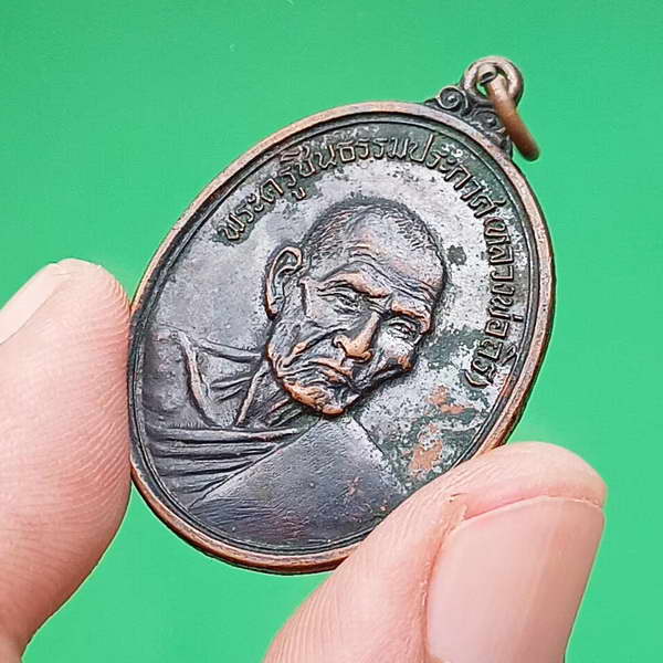 เหรียญพระครูชินธรรมประกาศ หลวงพ่อถิร งานพุทธาภิเษกผูกพัทธสีมา วัดบ้านลำ สระบุรี ปี 2517 เนื้อทองแดงรมดำ เหรียญรูปไข่ครึ่งองค์ ขนาดประมาณ 2.5 x 3.5 ซ.ม.