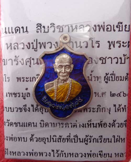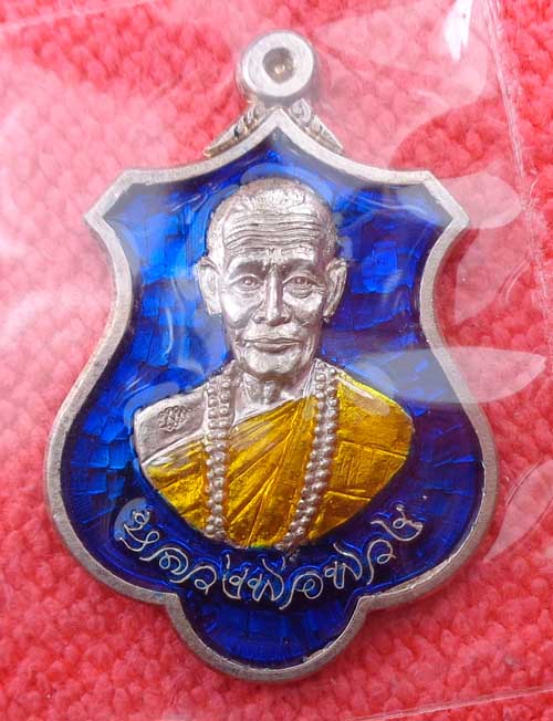 เหรียญรุ่นแรก เนื้อเงินลงยาสีน้ำเงิน (แยกชุดกรรมการ) หลวงปู่พวง วัดน้ำพุสามัคคี จ.เพชรบูรณ์ จำนวนการสร้าง20เหรียญ สภาพสวยซองเดิม