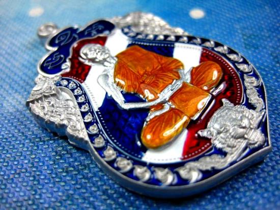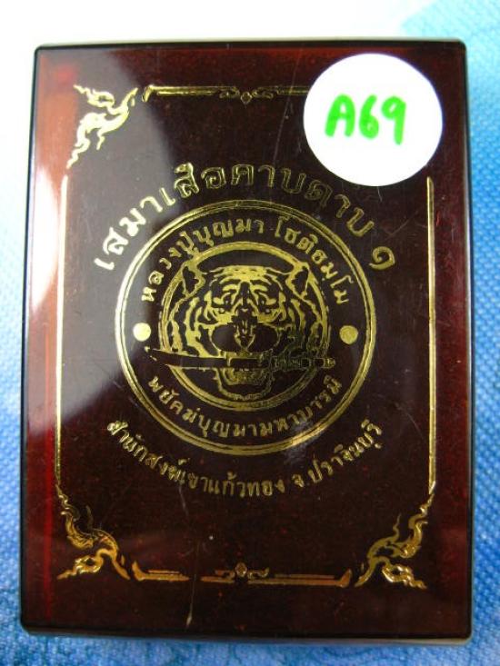 ชื่อพระเครื่อง เหรียญรุ่นเสมาเสือคาบดาบ 1 หลวงปู่บุญมา โชติธมโม สำนักสงฆ์เขาแก้วทอง เนื้อปีกเครื่องบิน ลงยาลายธงชาติไทย (---A69---)