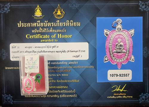 เหรียญเต่าเรือน หลวงปู่หลิว วัดไร่แตงทอง รุ่นอธิบดีเมตตามหาลาภ ปี2540 ติดรางวัลที่3 งานสมาคมพระเครื่องพระบูชาไทย