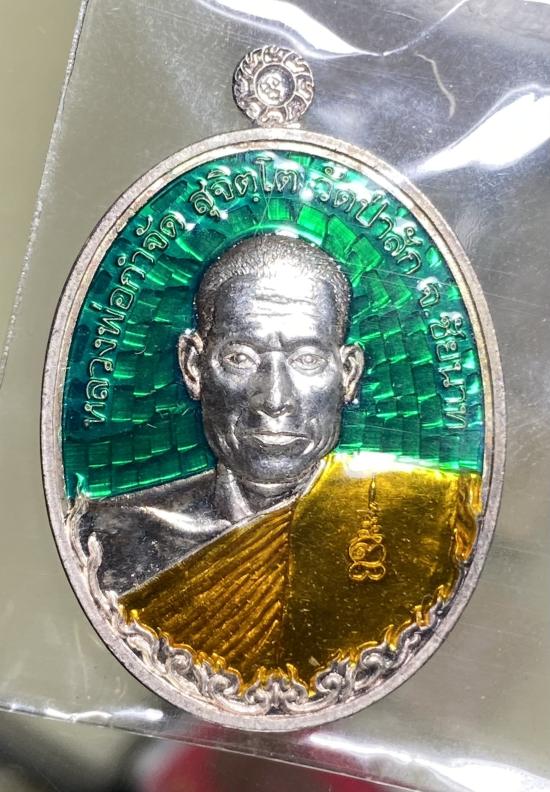 เลข NO.168 เหรียญหลวงพ่อกำจัดวัดป่าสัก ชัยนาท ปี 2555 เนื้อเงินลงยาสีเขียวเหนี่ยวทรัพย์ เลขตอกโค๊ต no.168 เลขมงคล รวยทางเดียว สภาพสวยครับ