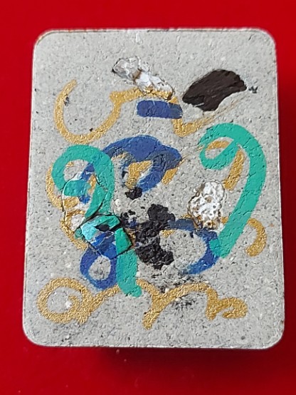 พระปิดตากระดูกผี พิมพ์วัดโพธิ์ หลวงพ่อชำนาญ วัดชินวราราม ปทุมธานี ตอก 1 โค้ด พร้อมรอยจาร 3 สี
