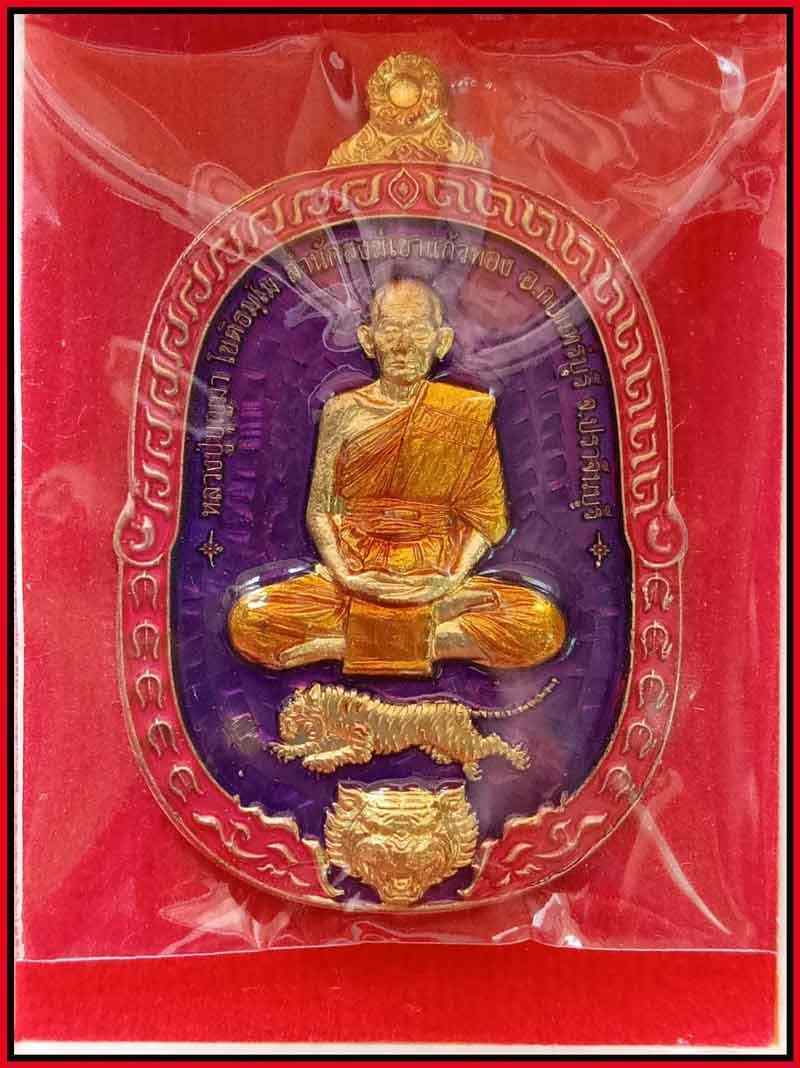 ยุคต้นๆค่ะ มงคลมหาเศรษฐีหลวงปู่บุญมา โชติธมฺโม เนื้อทองทิพย์ ลงยาม่วง ขอบชมพู ลงยาจีวร สวย สง่างาม สมศักดิ์ศรีพุทธคุณสายเหนียวค่ะ