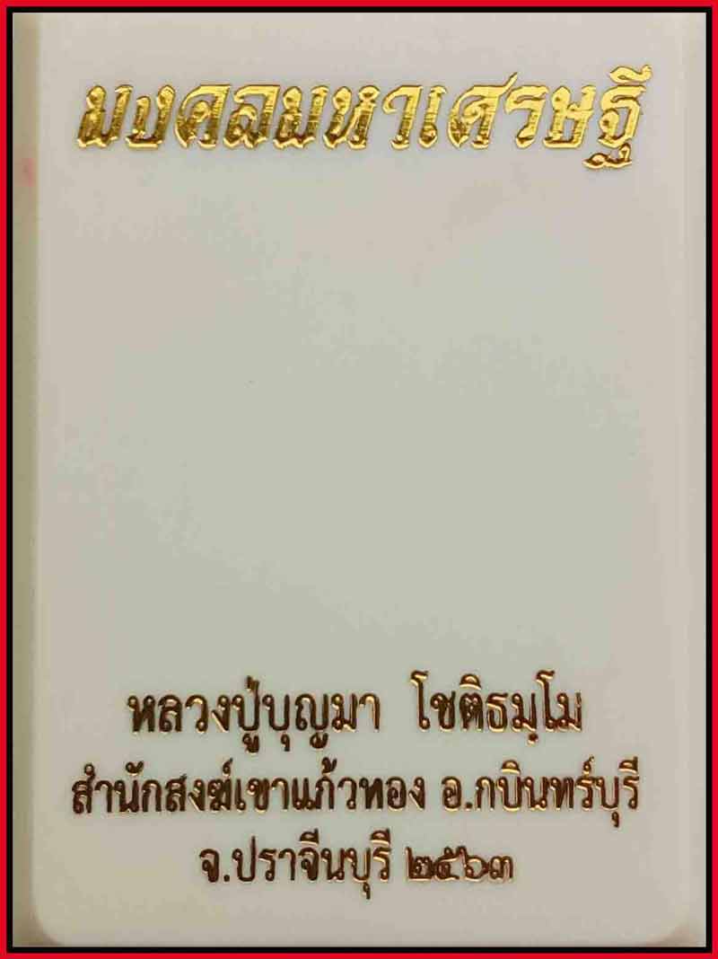 เหรียญมงคลมหาเศรษฐี หลวงปู่บุญมา โชติธมฺโม สำนักสงฆ์เขาแก้วทอง จ.ปราจีนบุรี ปี 2563 เนื้อทองทิพย์ ลงยาม่วง ขอบชมพู ลงยาจีวร จำนวนการสร้าง 400 เหรียญ เหรียญนี้ หมายเลข ๑๒๕ สวย สง่างาม เข้มขลัง พุทธคุณแคล้วคลาด คงกระพันชาตรี เมตตามหานิยมเป็นเลิศ สร้างน้อยหายากค่ะ