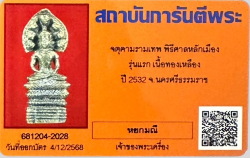 จตุคามรามเทพ พิธีศาลหลักเมือง รุ่นแรก เนื้อทองเหลือง ปี 2532 จ.นครศรีธรรมราช