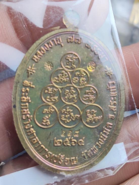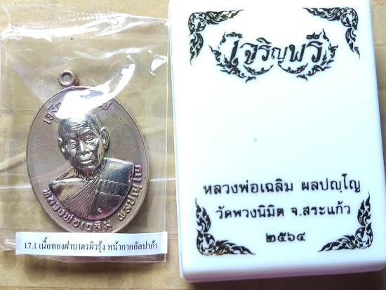 เหรียญรูปไข่ เจริญพร77 หลวงพ่อเฉลิม วัดพวงนิมิต ต.เขาสามสิบ อ.เขาฉกรรจ์ จ.สระเเก้ว ปี 64 หมายเลข 118 ที่ระลึกสร้างศาลาการเปรียญ พร้อมกล่องเดิม