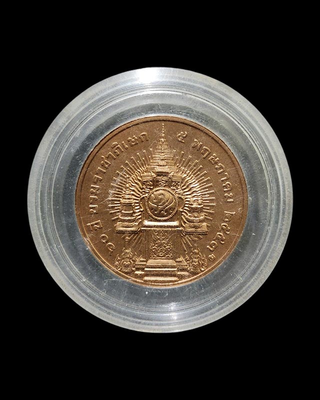 เหรียญในหลวง ที่ระลึก 60 ปี บรมราชาภิเษก เนื้อทองแดงรมดำพ่นทราย ปี53 (มีแต่เหรียญใส่ตลับใส)