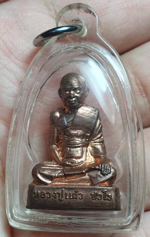 รูปเหมือนปั๊มสดุ้งกลับเนื้อทองแดง หลวงปู่แผ้ว ปวโร วัดหนองพงนก ปี2554 (องค์ที่1) |