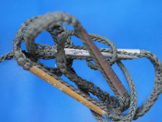 ตะกรุดสายถักเชือกเขียว เนื้อโลหะ 3 สี ยาวขนาดดอกละ 7 ซม. สภาพสวย ยาว 38 นิ้ว อายุกว่า 20 ปี งานถักมือโบราณแท้เคาะแรก