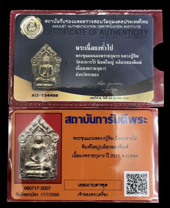 ขุนแผนผงพรายกุมาร บล็อคลองพิมพ์ใหญ่ หลวงปู่ทิม วัดละหารไร่ จังหวัดระยอง2517 ไม่ฝังตะกรุดพบเจอน้อยมากๆสร้างไม่เกิน5องค์ ส่วนตัวผมก็เล่นบล็อคลองพิมพ์มานานพึ่งพบเจอเพียงองค์นี้องค์เดียวเท่านั้นอีก2องค์เห็นอยู่ในหนังสือรวมขุนแผนเล่มใหญ่เล่มหลักเล่มมาตรฐานที่คุณหมอกฤษฎ์ได้ตีพิมพ์ไว้ครับ การันตีว่าที่สุดของหายากจริงๆครับ มีบัตรรับรอง2 ใบ เวปการันตีพระ กับบัตรรับรองของอาจารย์ป๋องสุพรรณครับ ท่านใดปรารถนาของหายากมิควรพลาดครับ