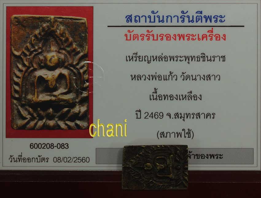 เหรียญหล่อ พระพุทธชินราช หลวงพ่อแก้ว วัดนางสาว เนื้ิอทองเหลือง ปี2469 จ.สมุทรสาคร สภาพสวยเก่าตามอายุหายากพร้อมใบประกาศรางวัลที่2 พร้อมบัตรรับรองพระแท้จากจีพระอุ่นใจได้ ไม่ต้องลุ้นค่ะ