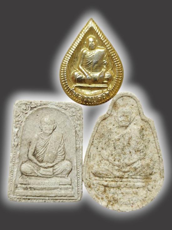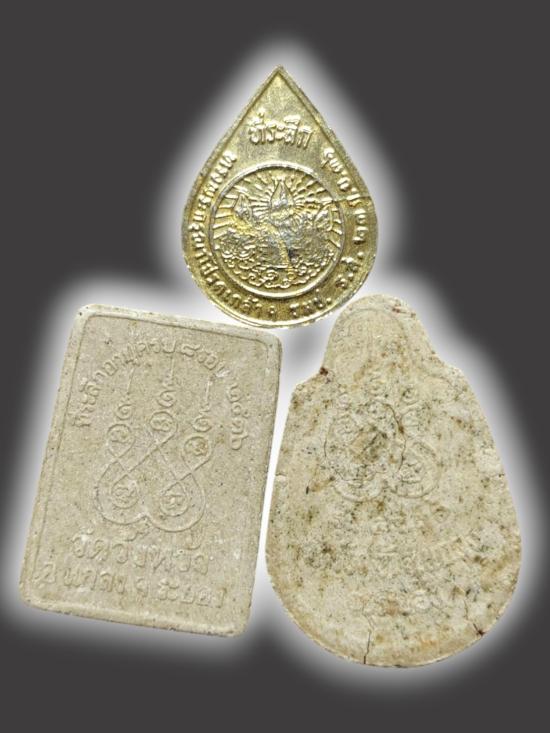 A5381.รวมพระ หลวงปู่คร่ำ วัดวังหว้า เนื้อผง 2 องค์ เหรียญหยดน้ำ 1 เหรียญ เคาะเดียวเเดงครับ