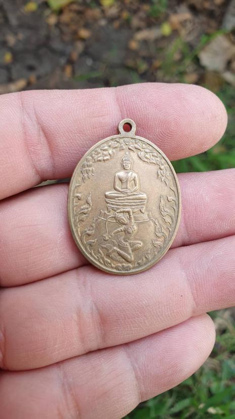 | เหรียญชนะมาร หลวงพ่อเกษม เขมโก ปี 2538 หลังยันต์เกาะเพชร หลวงปู่ศูข |