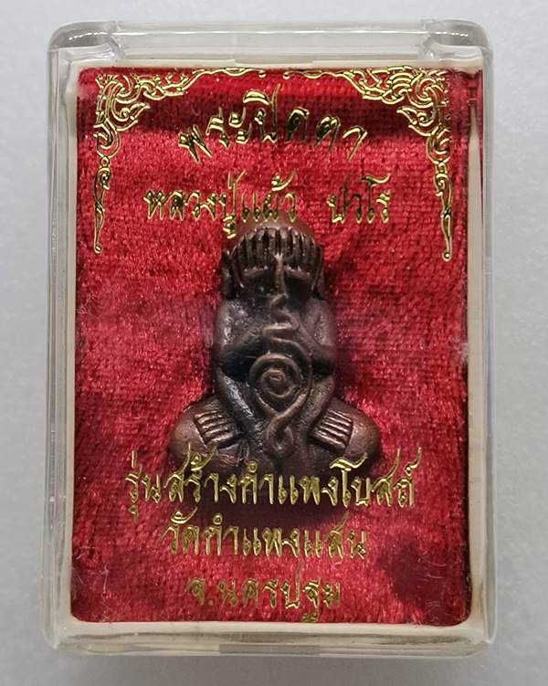 พระปิดตา ปี47 หลวงปู่แผ้ว ปวโร รุ่นสร้างกำแพงโบสถ์ วัดกำแพงแสน จ.นครปฐม มีกล่อง |