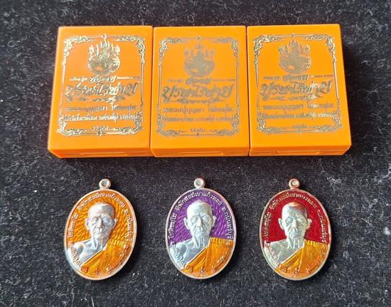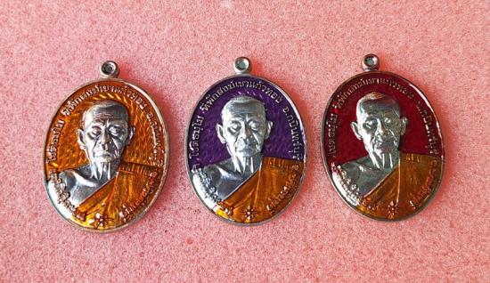 หลวงปู่บุญมา โชติธมุโม จ.ปราจีนบุรี รุ่นชนะจน บรูพาไร้พ่าย เนื้อทองแดงลงยา3เหรียญ ปี2564