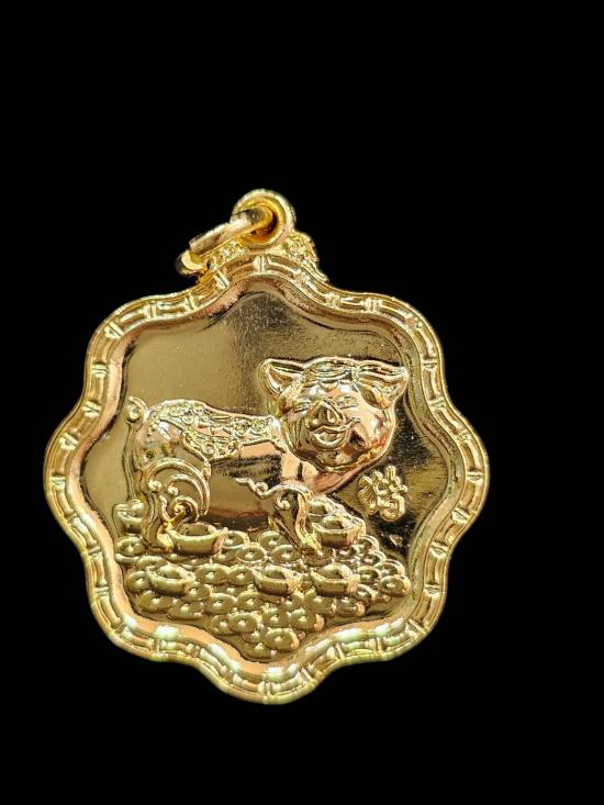เหรียญหมูนำโชค วัดมังกรกมลาวาส(เล่งเน่ยยี่) เยาวราช (เนื้อกะไหล่ทอง) ปี 2562 กรุงเทพ ส่งพร้อมถุงกำมะหยี่สวยๆ