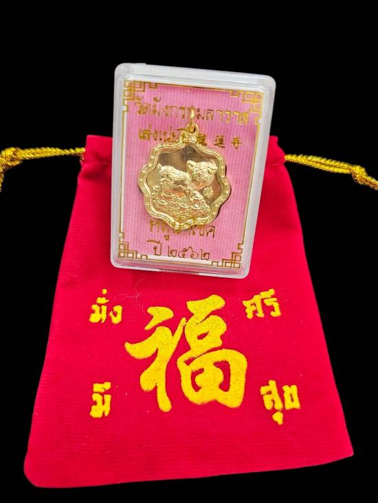 เหรียญหมูนำโชค วัดมังกรกมลาวาส(เล่งเน่ยยี่) เยาวราช (เนื้อกะไหล่ทอง) ปี 2562 กรุงเทพ พร้อมถุงกำมะหยี่