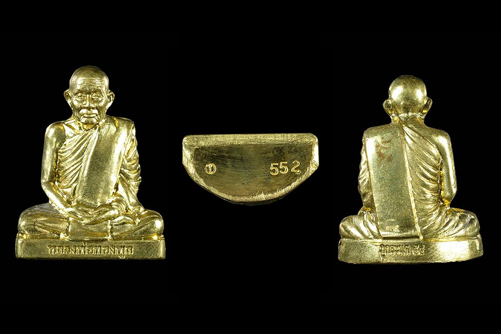 รูปเหมือนปั้ม รุ่นแรก ปี๕๔ หลวงปู่ทองพูล สิริกาโม วัดสามัคคีอุปถัมป์ จ.บึงกาฬ เนื้อทองฝาบาตร สภาพสวยกล่องเดิม เนื้อทองฝาบตร