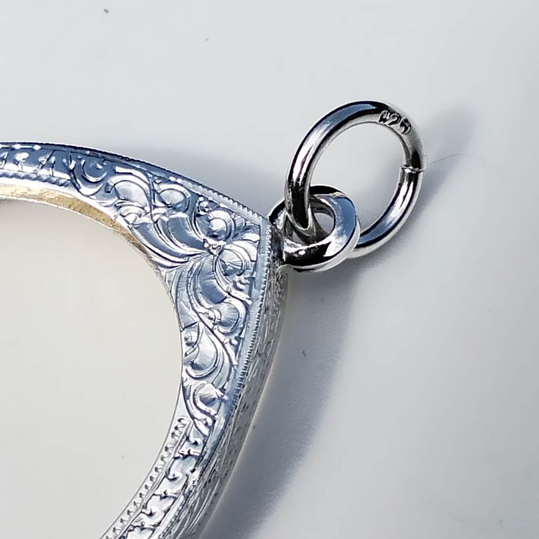 กรอบเงินแท้ 92.5% ตอก ห่วง 925 งานขึ้นมือ แกะลาย ขนาดหน้าจอ กว้าง 2.5 สูง 3.2 เซ็น