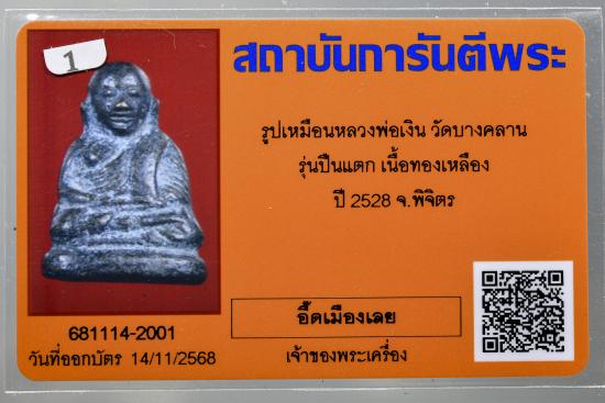 พระรูปหล่อโบราณ หลวงพ่อเงิน วัดบางคลาน รุ่นปืนแตก เนื้อเก่า พ.ศ.2528 พร้อมบัตรรับรอง++**1