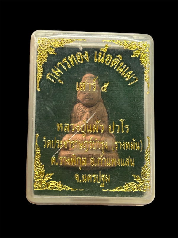 วัดใจ กุมารเนื้อดินเผา เสาร์5 หลวงปู่แผ้ว วัดรางหมัน จ.นครปฐม ปี55 "อุดผงดิน7ป่าช้า" หลวงปู่อธิฐานจิตกรณีพิเศษ พิธีเสาร์5 สภาพสมบูรณ์ มีกล่องเดิม |