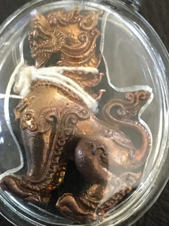 เป็นสีหราชตำราไทยใหญ่ เชื่อว่าเป็นราชาแห่งสัตว์ และมนุษย์ เป็นใหญ่ในโลก เพราะเหยียบโลกไว้ใต้อุ้งเท้า เหยียบทวีปไว้ทั้ง 4 ทวีป วัดทางภาคเหนือ จึงนิยมสร้างสิงห์คู่ยืนเฝ้าประตูวัด คอยพิทักษ์วัด จับวิญญาณชั่วร้ายกิน ปราบปรามสิ่งไม่ดีทั้งหลาย สมัยครูบาออเป็นนักรบไทยใหญ่ช่วงสงครามโลกครั้ง 2 ท่านลงยันต์กลางหลังเพื่อนทหารด้วยยันต์สิงห์ปราบป่า พญาปราบเมือง ปรากฏว่าเพื่อนท่านทั้งกองร้อย รบเก่ง ศัตรูกลัว รบที่ไหนชนะที่นั่น สร้างความคร้ามเกรงในอำนาจตบะเดชะไปทั่ว เพื่อนท่านเดี๋ยวนี้ แม้แก่ชรา ก็ยังมีอำนาจ ตบะเดชะอันเกิดจากยันต์สิงห์ปราบป่าของครูบาออ ได้เป็นนายพล นายทหารใหญ่ ประจำรัฐไทยใหญ่กันทุกคน พร้อมเลี่ยม พระสวยมากเดิมๆ หายากแล้ว |
