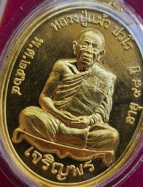 เคาะเดียว.. เหรียญเจริญพรล่าง เนื้อฝาบาตร หลวงปู่แผ้ว ปวโร อายุ ๙๘ ปี วัดรางหมัน เนื้อฝาบาตร ผิวเหลืองอร่ามดุจทองคำ จำนวนสร้าง ๕,๙๙๙ เหรียญสร้างน้อย พระผิวสวยเดิมจมูกโด่ง #มีกล่องเดิม