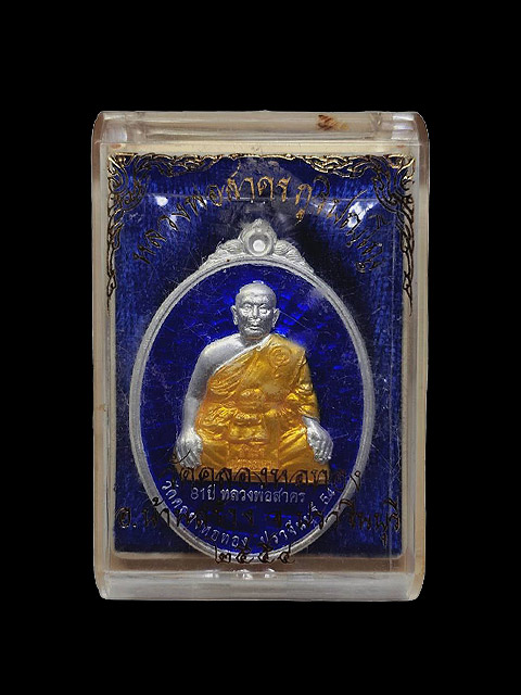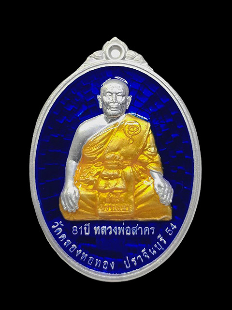 ***เหรียญคันฉ่องเนื้อเงินลงยาสีน้ำเงิน (หมายเลข 131) รุ่น สำเร็จปราถนา หลวงพ่อสาคร วัดคลองหอทอง จ.ปราจีนบุรี สร้างเพียง 120 เหรียญ ***