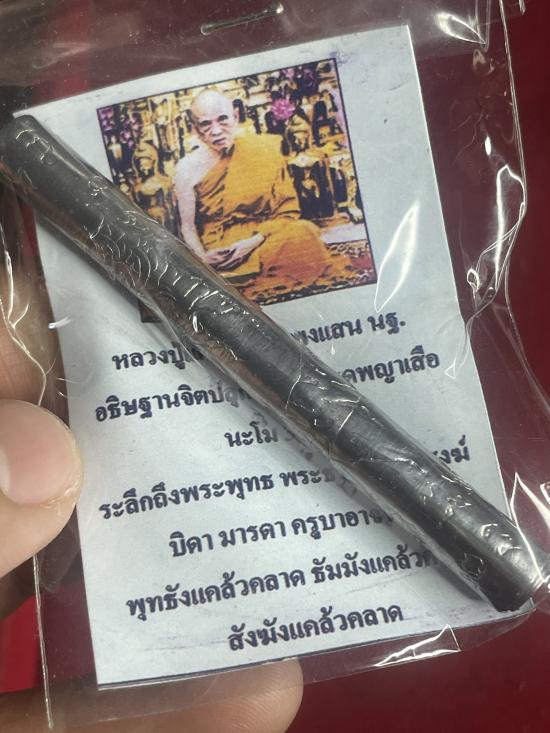 หลวงปู่แผ้ว ปวโร ตะกรุดพญาเสือ เนื้อตะกั่ว พร้อมใบฝอย ปี 58