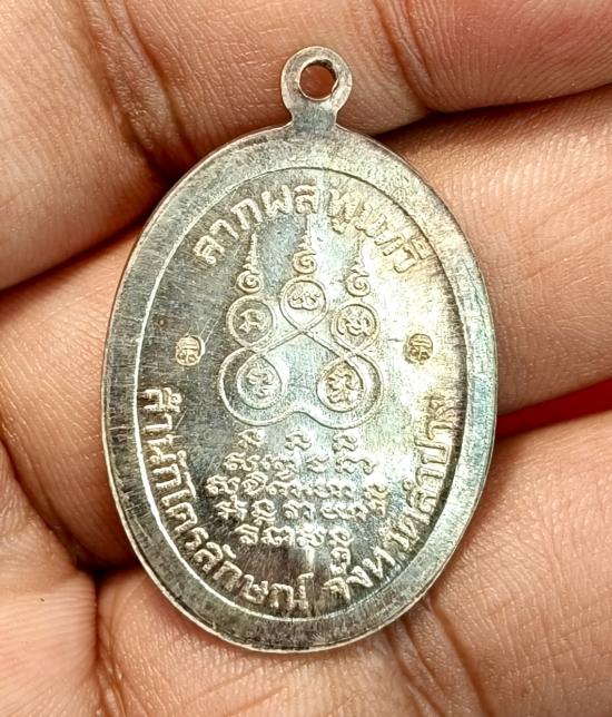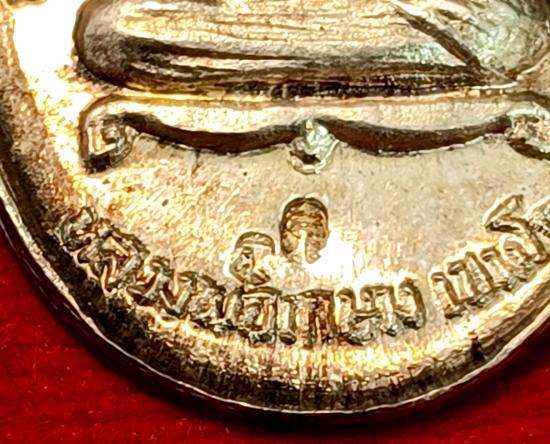 เหรียญลาภผลพูนทวี ปี 2530 เนื้อเงิน ตอกโค๊ตเฮง หรือโค้ดกิม หรือโค้ดทอง 3 โค้ด สร้างเพียง 2,000 องค์ องค์นี้โค้ดเปิ้ล2โค้ดด้านหน้า น้ำทองกระจายทั่วเหรียญ