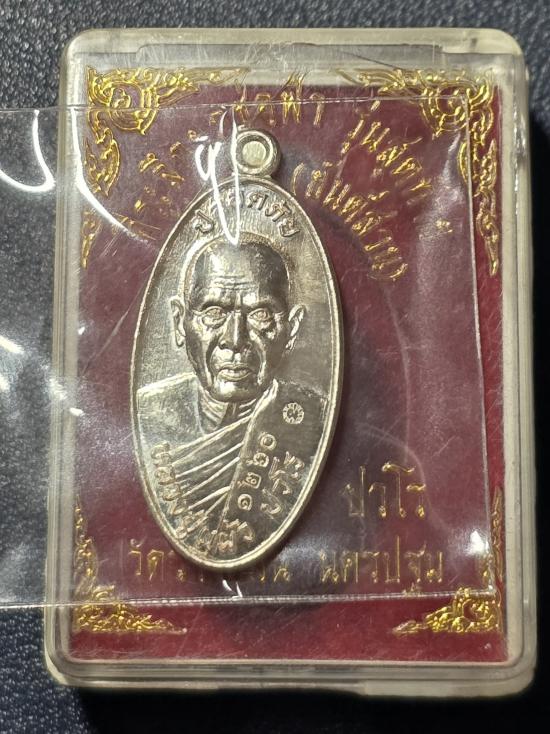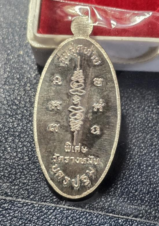 เหรียญใบขี้เหล็กหลวงปู่แผ้ว วัดรางหมัน รุ่นสุดท้าย พิมพ์เล็ก เนื้อเงิน ปี 2556 หมายเลข1260