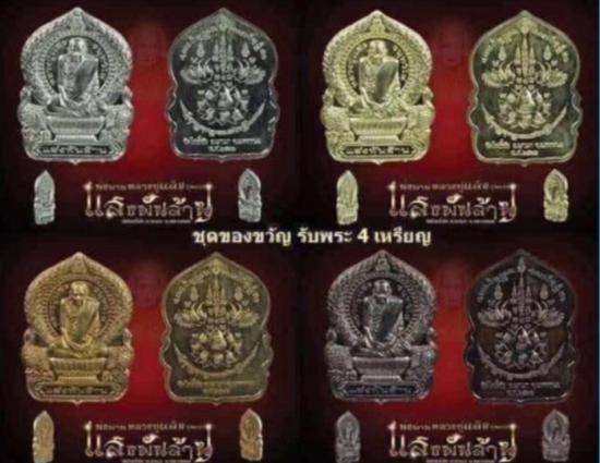 เหรียญนั่งพานรุ่นแรก ลป.แสง วัดโพธิ์ชัย นครพนม รุ่นแสงพันล้าน ชุดของขวัญ 4 เหรียญ(ตามภาพ) ราคาจองชุดละ 500 บาท วันนี้วัดใจเคาะแรกแดงครับ(ชุดสุดท้ายหมดแล้วครับ)
