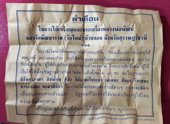 พระ กสิน หลวงพ่อพัฒน์ วัดใหม่ สุราษฎร์ธานี ไม่ทราบปีสร้าง พร้อมกระดาษแนะนำการบูชา